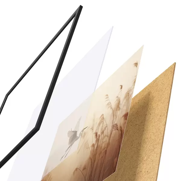 Il poster è composto da cornice, plexiglass, immagine stampata e supporto in truciolato. Il poster può essere immediatamente appeso alla parete grazie ai supporti sul retro.