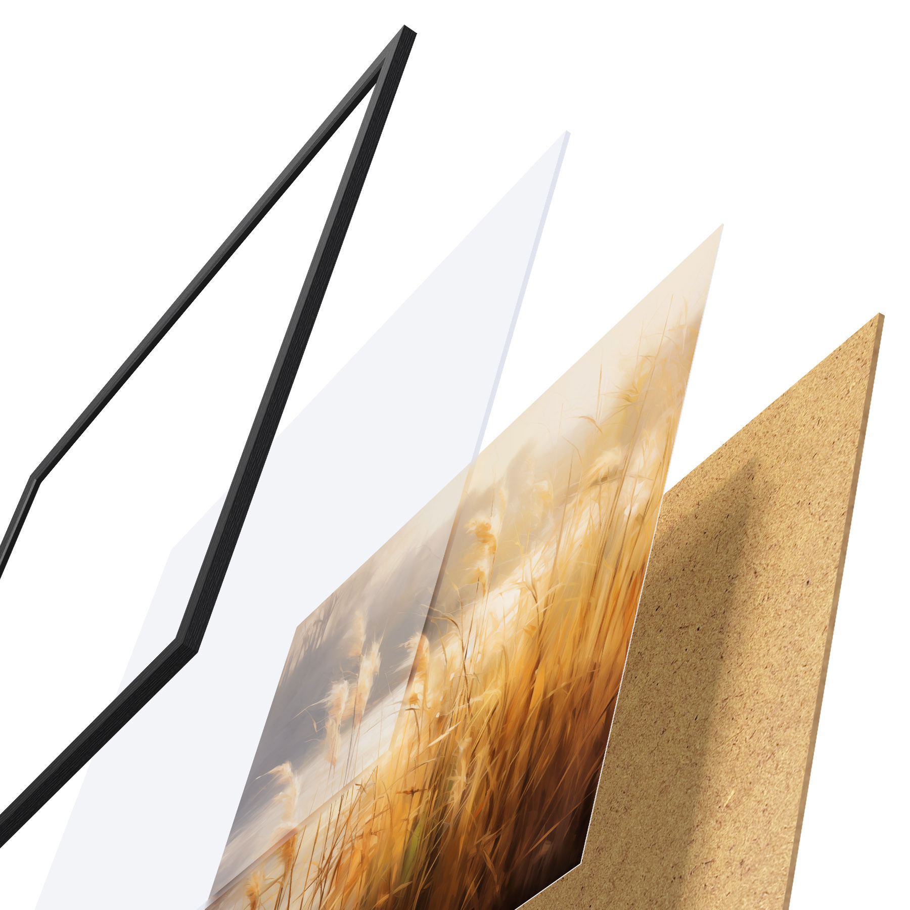 Il poster è composto da cornice, plexiglass, immagine stampata e supporto in truciolato. Il poster può essere immediatamente appeso alla parete grazie ai supporti sul retro.
