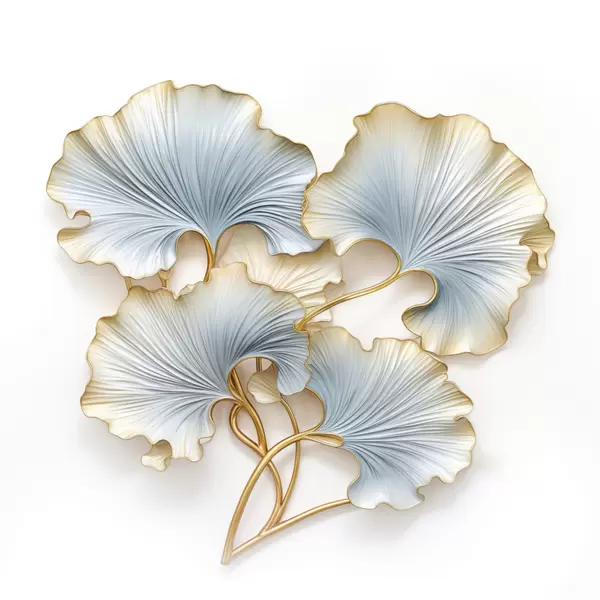 Poster Foglie di ginkgo stilizzate con tocchi di blu e giallo Nr f48397