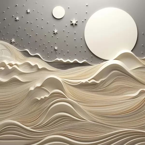 Poster Un paesaggio minimalista e stilizzato con dolci colline e una grande luna in un cielo stellato, arte astratta Nr f48401