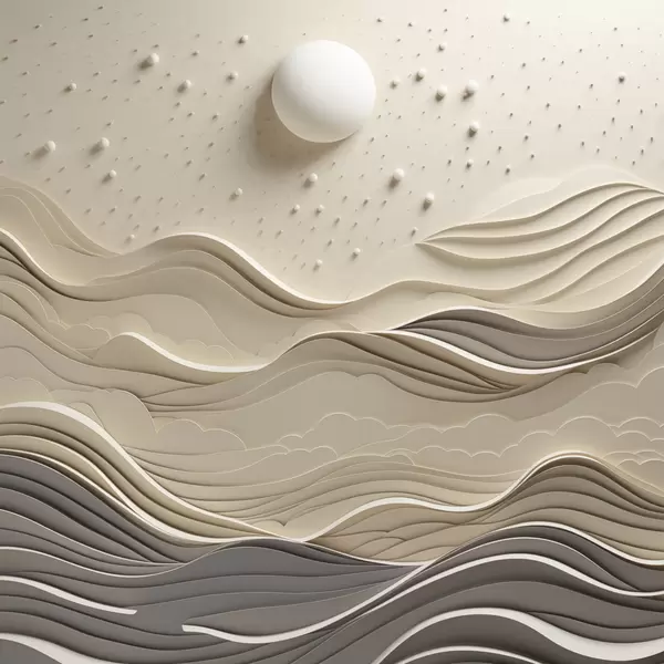 Poster Un paesaggio minimalista e stilizzato con dolci colline e una grande luna in un cielo stellato, arte astratta Nr f48402
