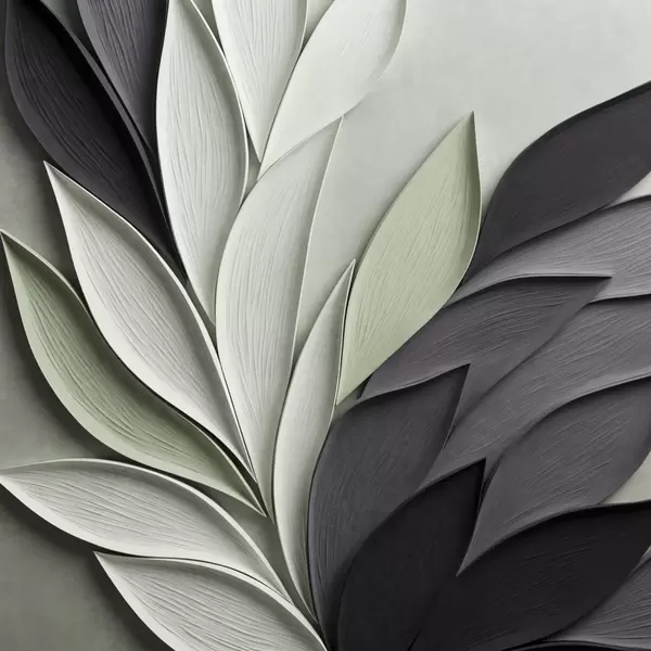 Poster Foglie stilizzate in tonalità di grigio, bianco e verde tenue Nr f48411