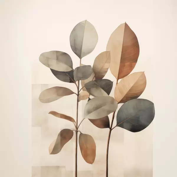Poster Piante alte con foglie ovali dai toni tenui e forme rettangolari astratte Nr f48413