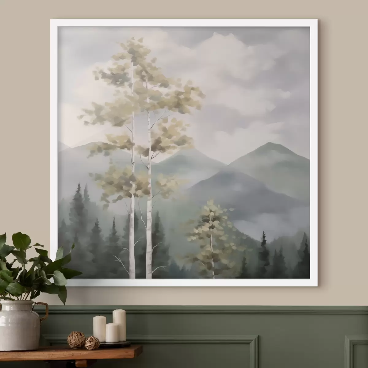 Poster Alberi sullo sfondo delle montagne, imitazione di un dipinto Nr f48421