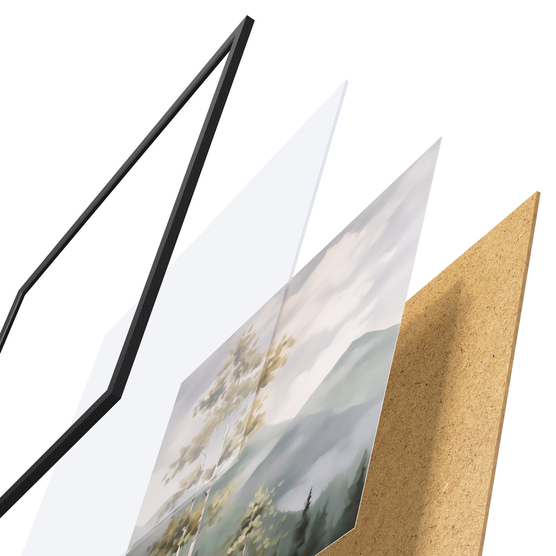 Il poster è composto da cornice, plexiglass, immagine stampata e supporto in truciolato. Il poster può essere immediatamente appeso alla parete grazie ai supporti sul retro.