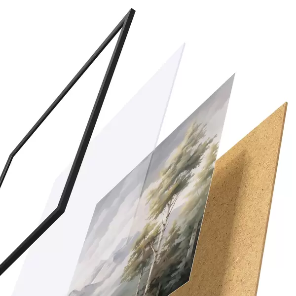 Il poster è composto da cornice, plexiglass, immagine stampata e supporto in truciolato. Il poster può essere immediatamente appeso alla parete grazie ai supporti sul retro.