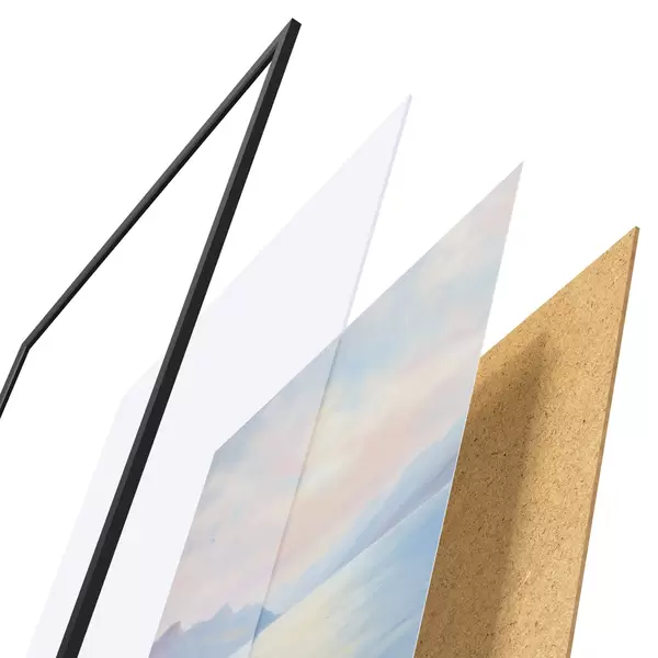 Il poster è composto da cornice, plexiglass, immagine stampata e supporto in truciolato. Il poster può essere immediatamente appeso alla parete grazie ai supporti sul retro.