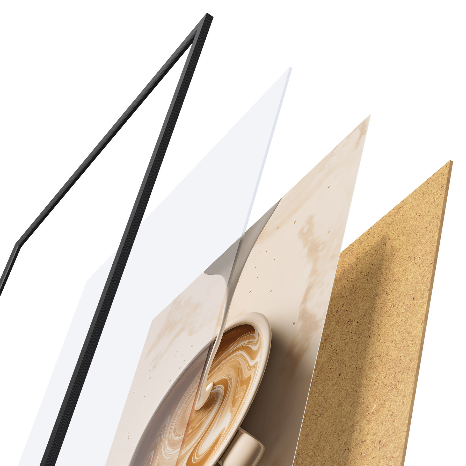 Il poster è composto da cornice, plexiglass, immagine stampata e supporto in truciolato. Il poster può essere immediatamente appeso alla parete grazie ai supporti sul retro.