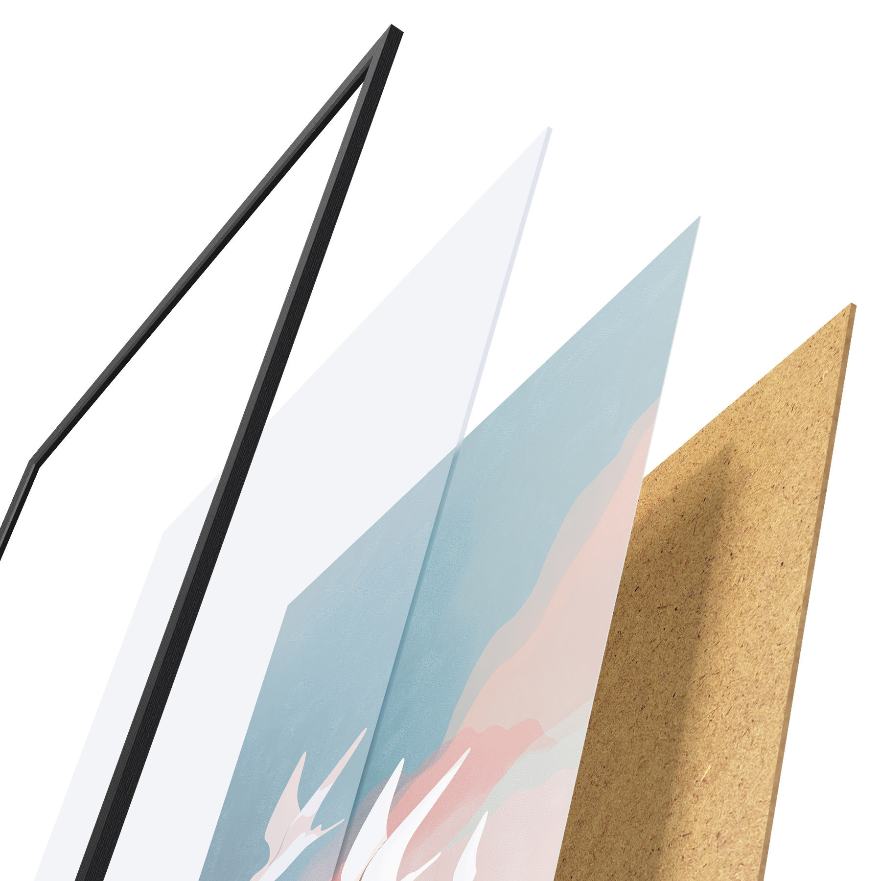 Il poster è composto da cornice, plexiglass, immagine stampata e supporto in truciolato. Il poster può essere immediatamente appeso alla parete grazie ai supporti sul retro.
