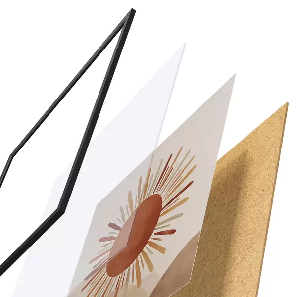 Il poster è composto da cornice, plexiglass, immagine stampata e supporto in truciolato. Il poster può essere immediatamente appeso alla parete grazie ai supporti sul retro.