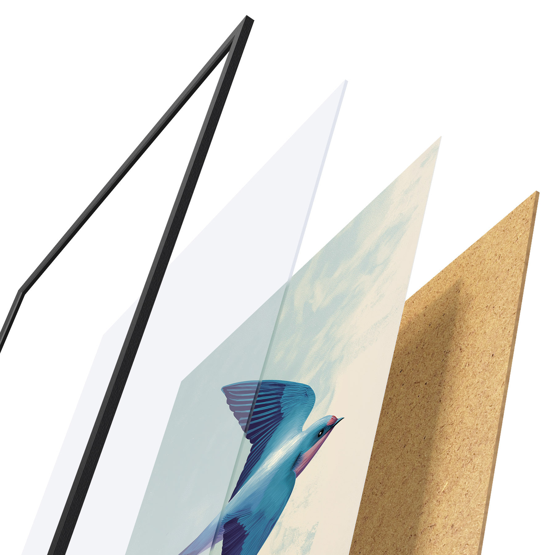 Il poster è composto da cornice, plexiglass, immagine stampata e supporto in truciolato. Il poster può essere immediatamente appeso alla parete grazie ai supporti sul retro.