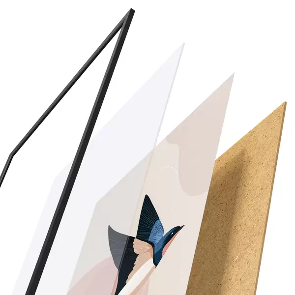 Il poster è composto da cornice, plexiglass, immagine stampata e supporto in truciolato. Il poster può essere immediatamente appeso alla parete grazie ai supporti sul retro.