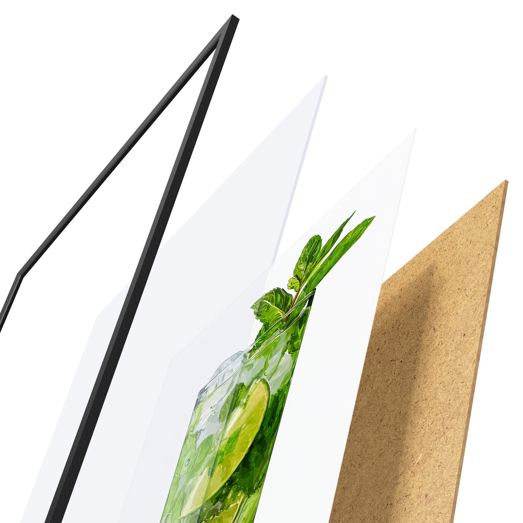 Il poster è composto da cornice, plexiglass, immagine stampata e supporto in truciolato. Il poster può essere immediatamente appeso alla parete grazie ai supporti sul retro.
