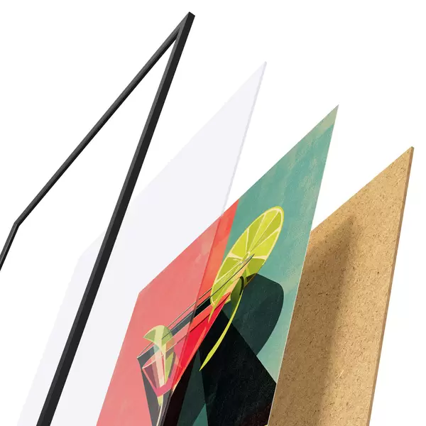 Il poster è composto da cornice, plexiglass, immagine stampata e supporto in truciolato. Il poster può essere immediatamente appeso alla parete grazie ai supporti sul retro.
