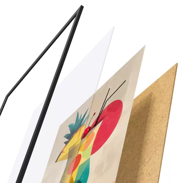 Il poster è composto da cornice, plexiglass, immagine stampata e supporto in truciolato. Il poster può essere immediatamente appeso alla parete grazie ai supporti sul retro.
