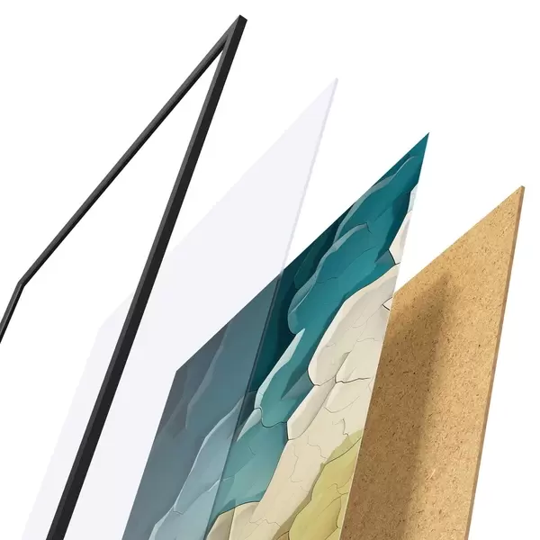 Il poster è composto da cornice, plexiglass, immagine stampata e supporto in truciolato. Il poster può essere immediatamente appeso alla parete grazie ai supporti sul retro.