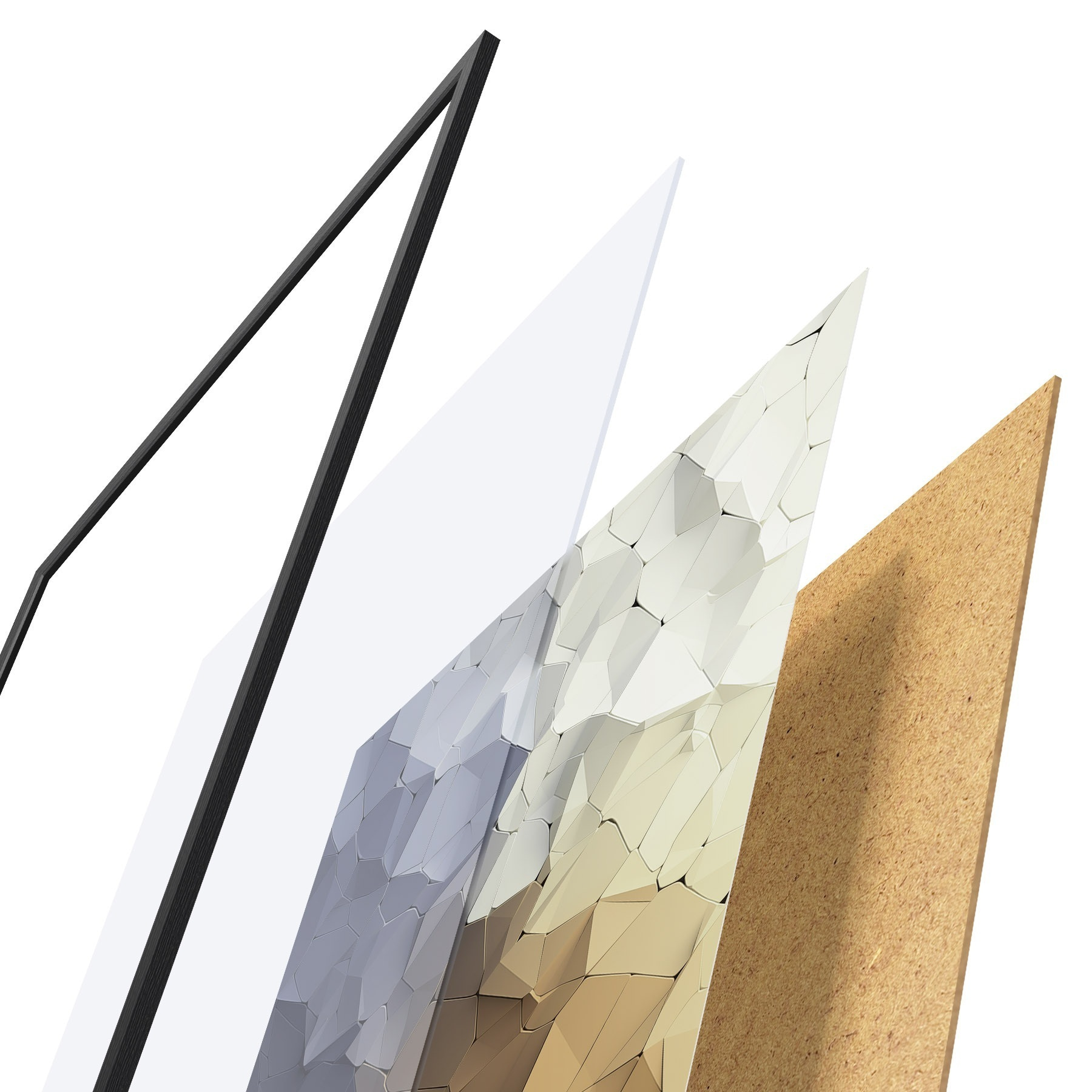 Il poster è composto da cornice, plexiglass, immagine stampata e supporto in truciolato. Il poster può essere immediatamente appeso alla parete grazie ai supporti sul retro.