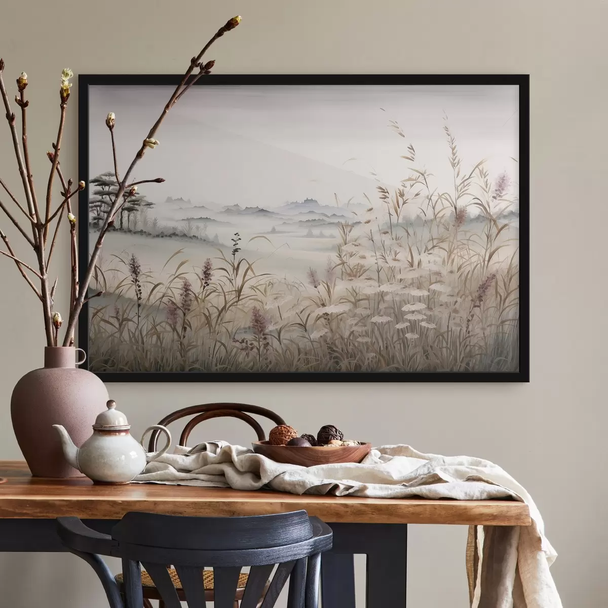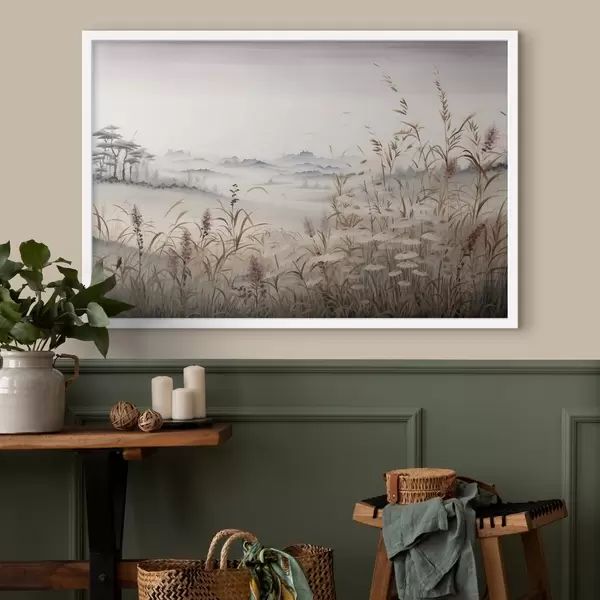 Poster Paesaggio nebbioso con erba Nr f48481