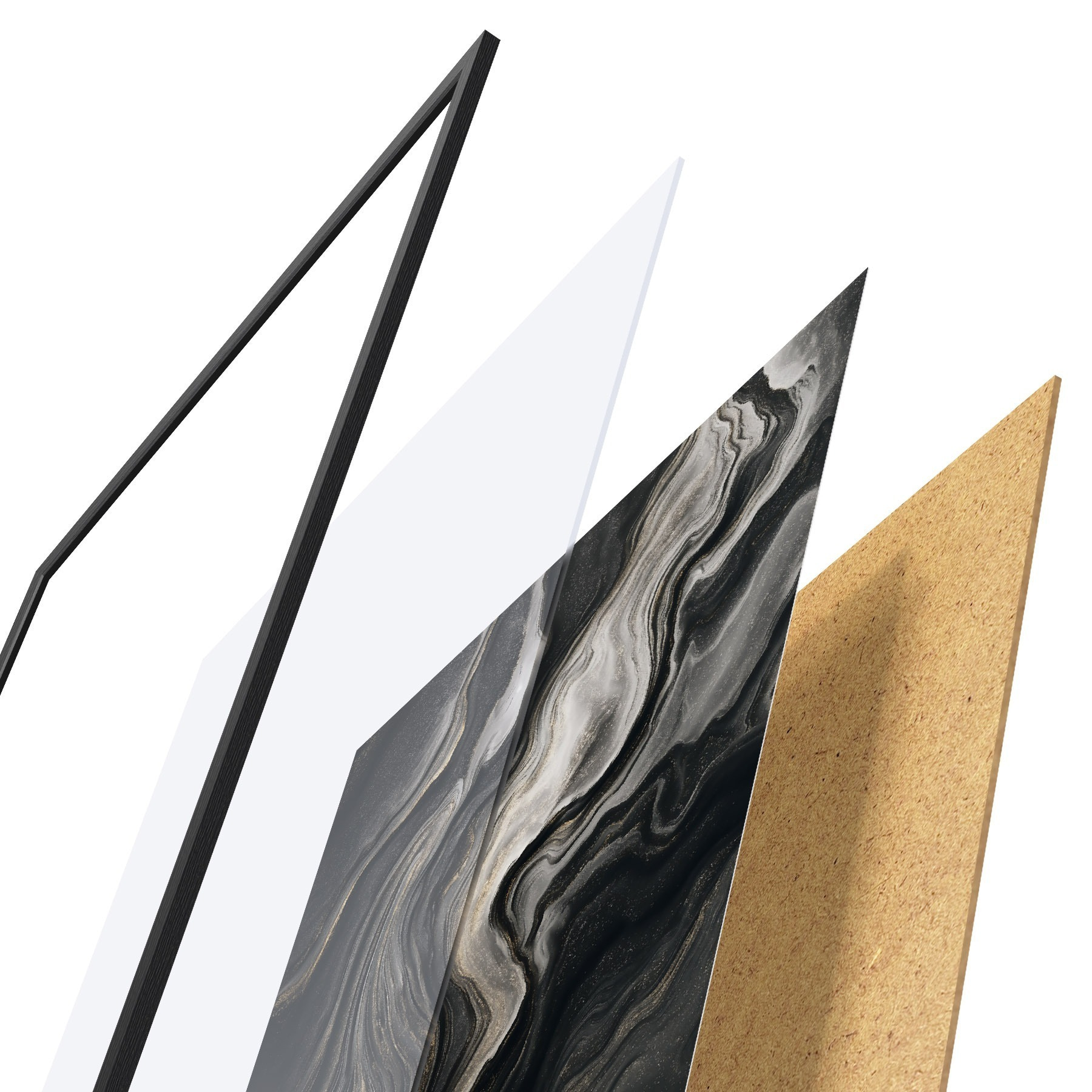 Il poster è composto da cornice, plexiglass, immagine stampata e supporto in truciolato. Il poster può essere immediatamente appeso alla parete grazie ai supporti sul retro.