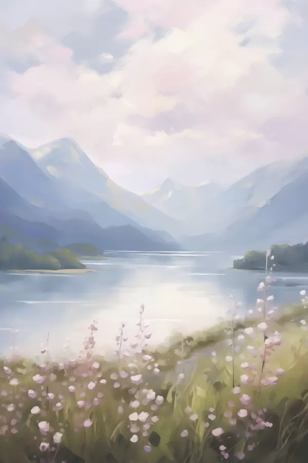 Poster Dipinto che raffigura un lago di montagna Nr f48504