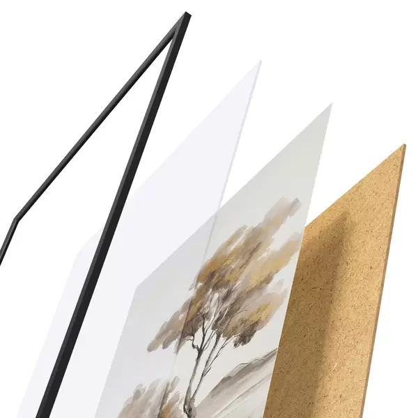 Il poster è composto da cornice, plexiglass, immagine stampata e supporto in truciolato. Il poster può essere immediatamente appeso alla parete grazie ai supporti sul retro.