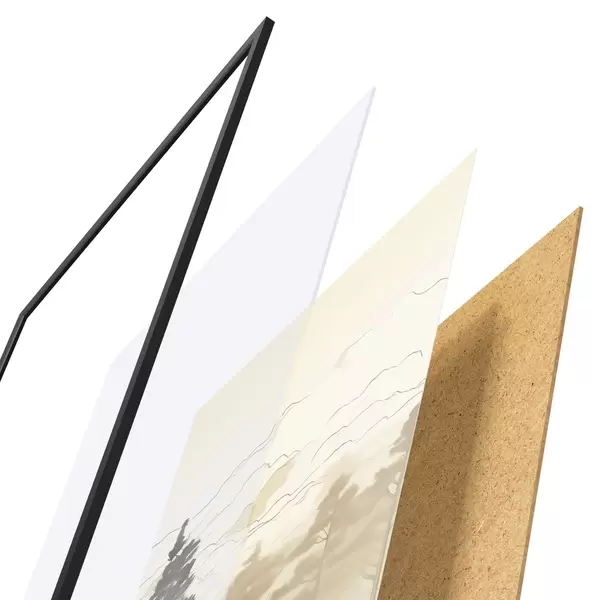 Il poster è composto da cornice, plexiglass, immagine stampata e supporto in truciolato. Il poster può essere immediatamente appeso alla parete grazie ai supporti sul retro.