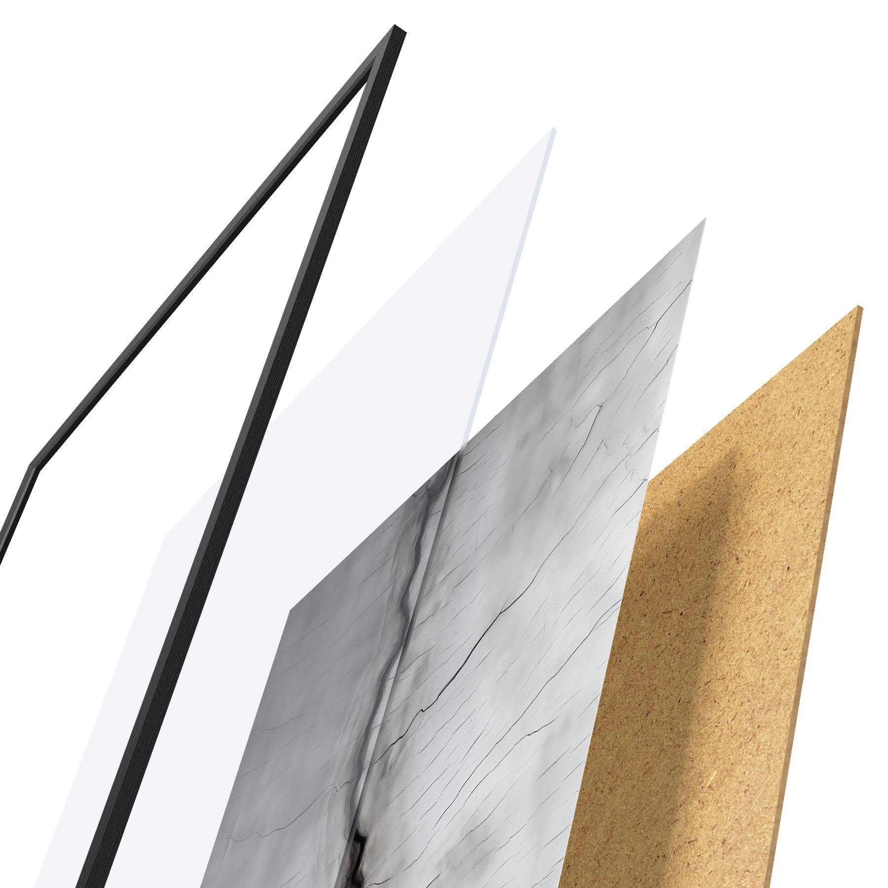 Il poster è composto da cornice, plexiglass, immagine stampata e supporto in truciolato. Il poster può essere immediatamente appeso alla parete grazie ai supporti sul retro.
