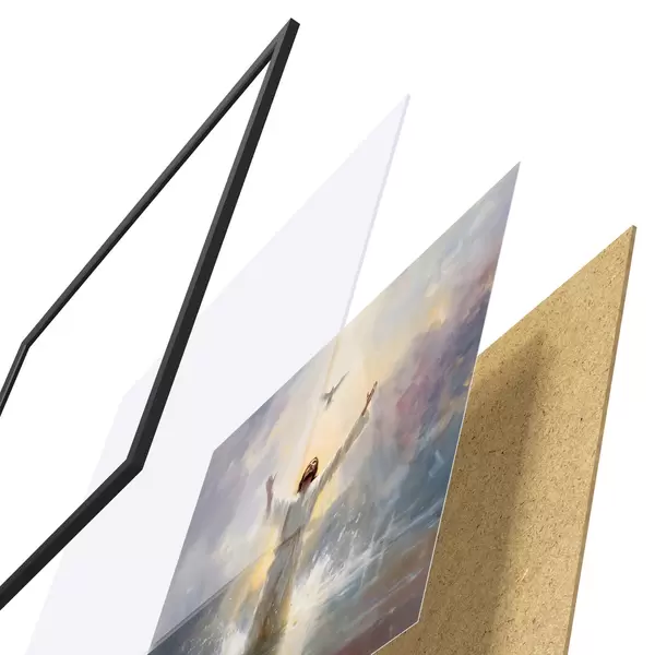 Il poster è composto da cornice, plexiglass, immagine stampata e supporto in truciolato. Il poster può essere immediatamente appeso alla parete grazie ai supporti sul retro.