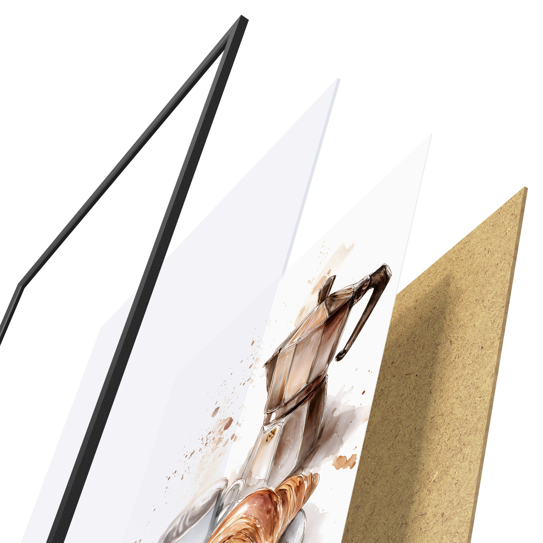 Il poster è composto da cornice, plexiglass, immagine stampata e supporto in truciolato. Il poster può essere immediatamente appeso alla parete grazie ai supporti sul retro.