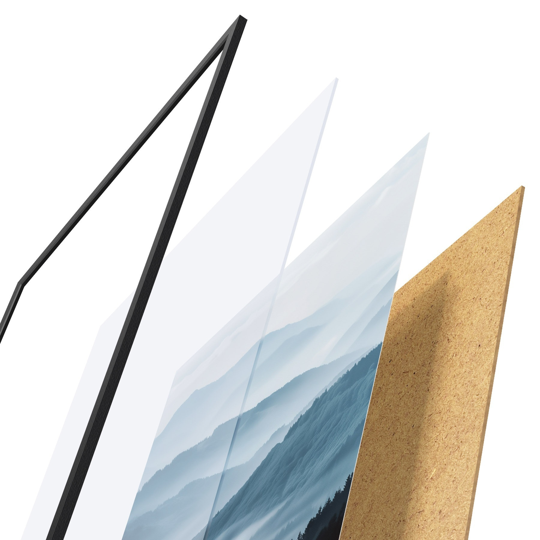 Il poster è composto da cornice, plexiglass, immagine stampata e supporto in truciolato. Il poster può essere immediatamente appeso alla parete grazie ai supporti sul retro.