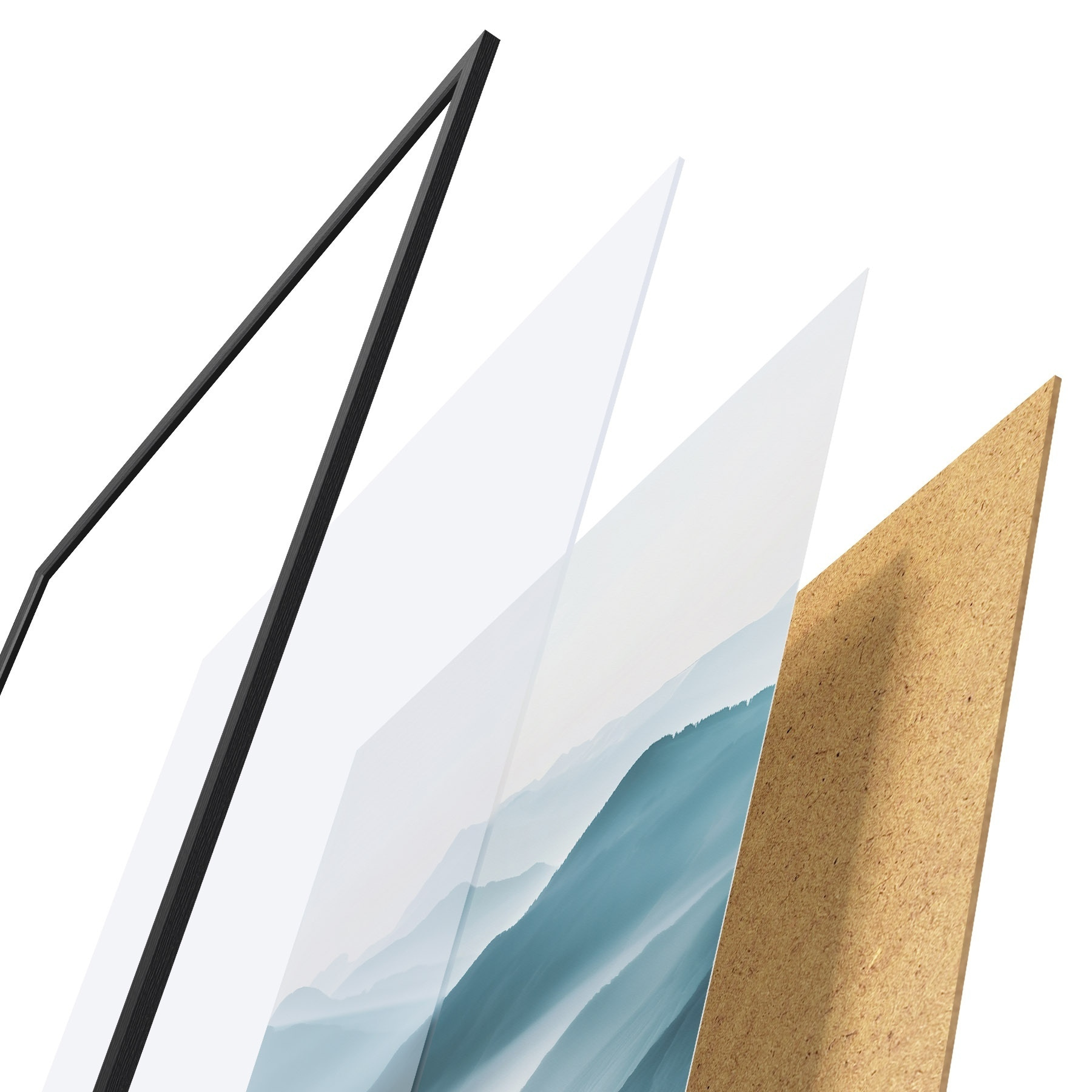 Il poster è composto da cornice, plexiglass, immagine stampata e supporto in truciolato. Il poster può essere immediatamente appeso alla parete grazie ai supporti sul retro.