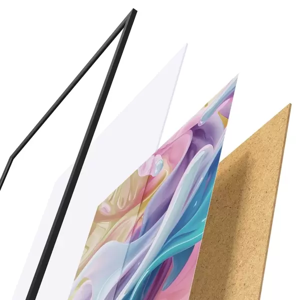 Il poster è composto da cornice, plexiglass, immagine stampata e supporto in truciolato. Il poster può essere immediatamente appeso alla parete grazie ai supporti sul retro.