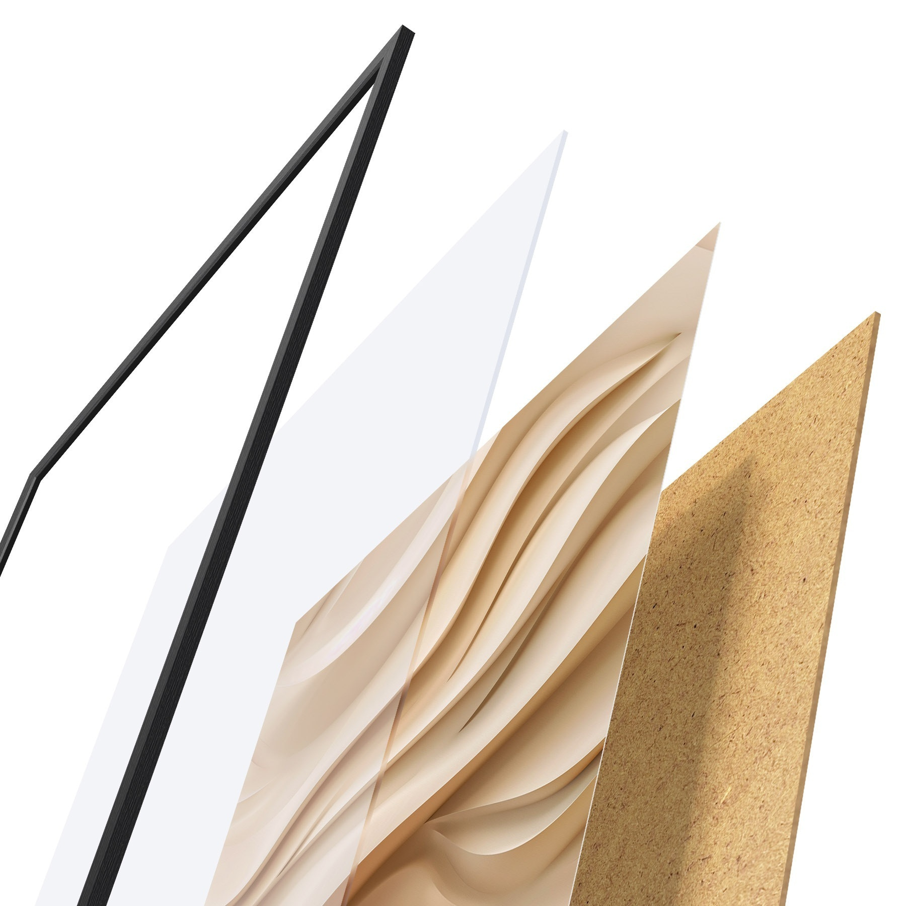 Il poster è composto da cornice, plexiglass, immagine stampata e supporto in truciolato. Il poster può essere immediatamente appeso alla parete grazie ai supporti sul retro.