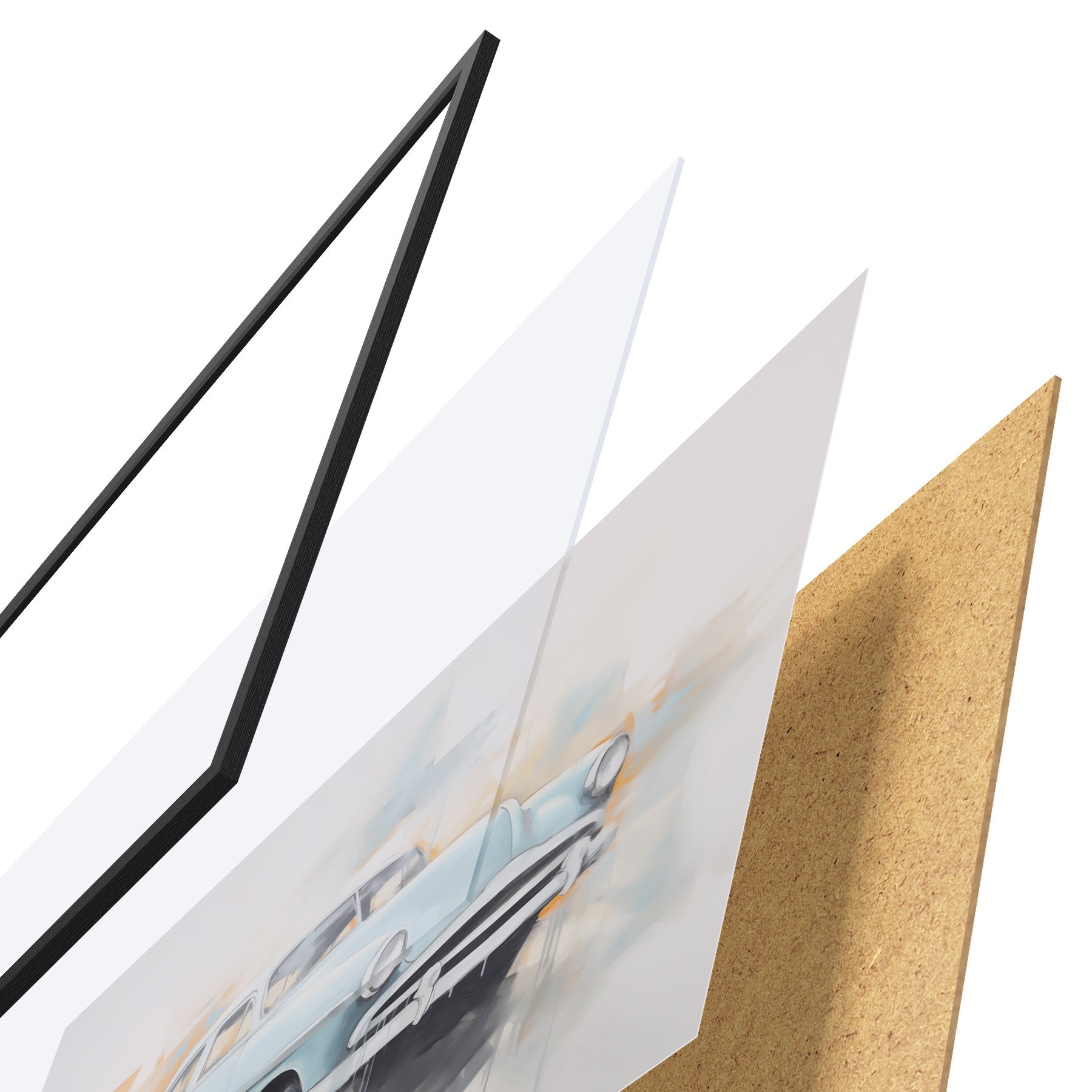 Il poster è composto da cornice, plexiglass, immagine stampata e supporto in truciolato. Il poster può essere immediatamente appeso alla parete grazie ai supporti sul retro.