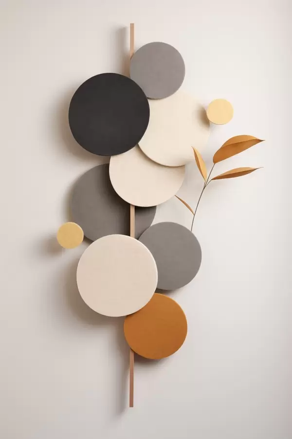 Poster Cerchi astratti con foglie in tonalità neutre Nr f48602
