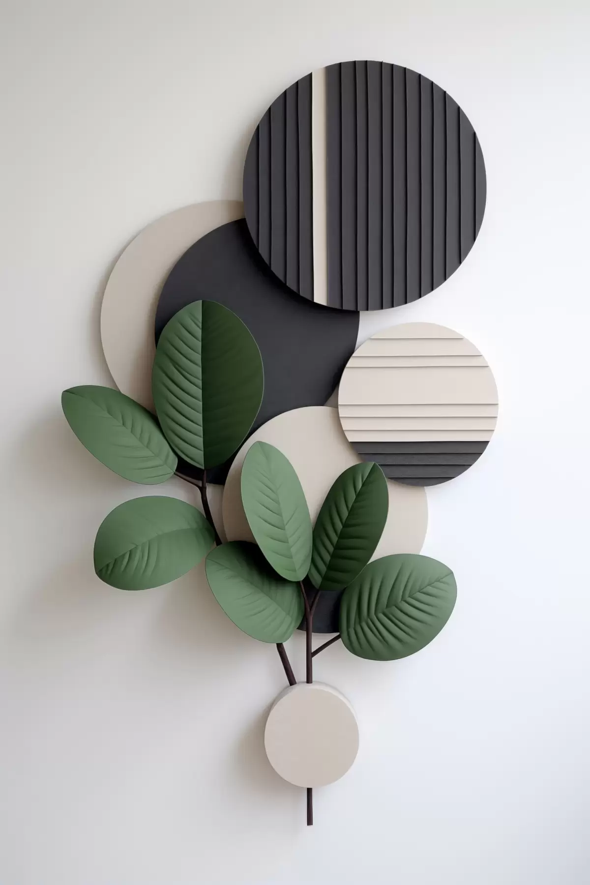 Poster Foglie verdi con elementi rotondi in rilievo f48603