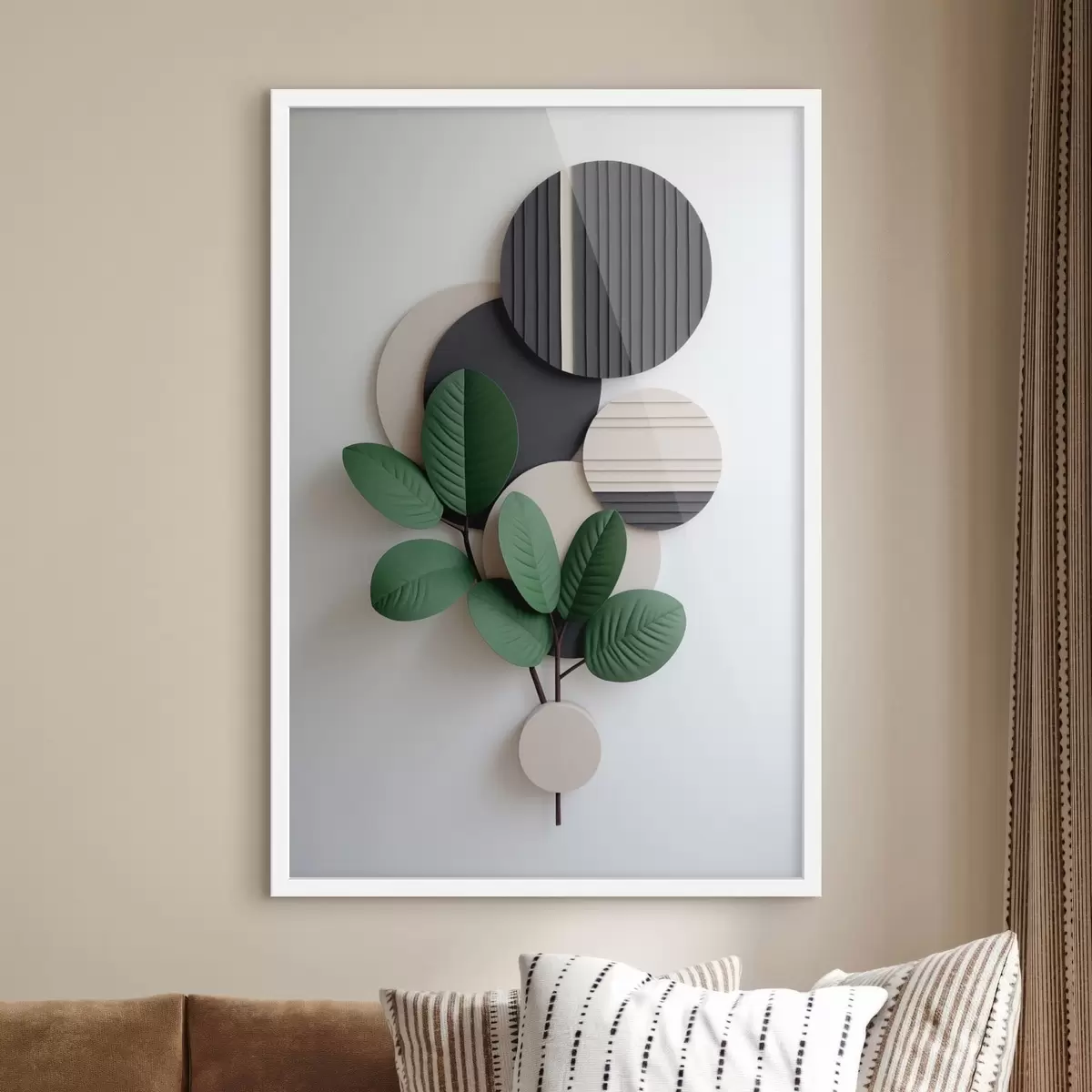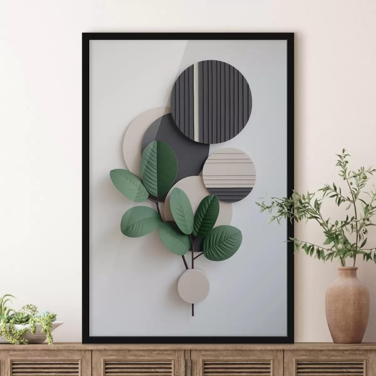 Poster Foglie verdi con elementi rotondi in rilievo Nr f48603