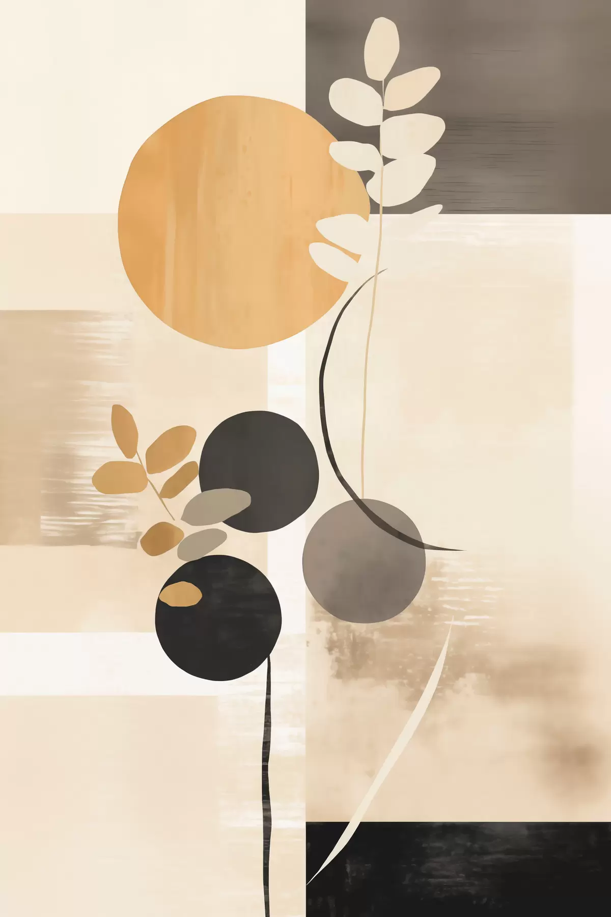 Poster Un'astrazione con foglie e cerchi Nr f48612