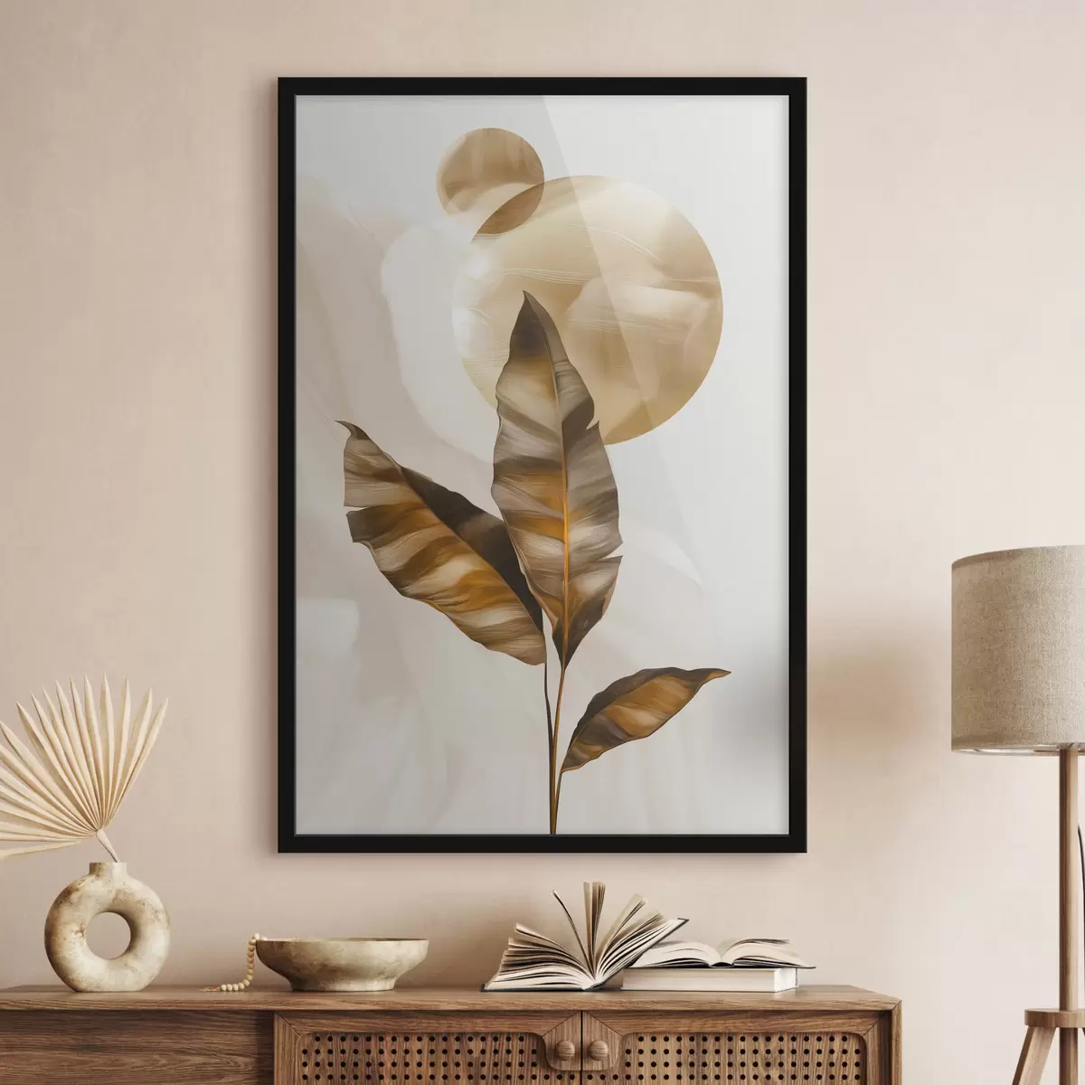 Poster Una composizione astratta di foglie e cerchi f48614