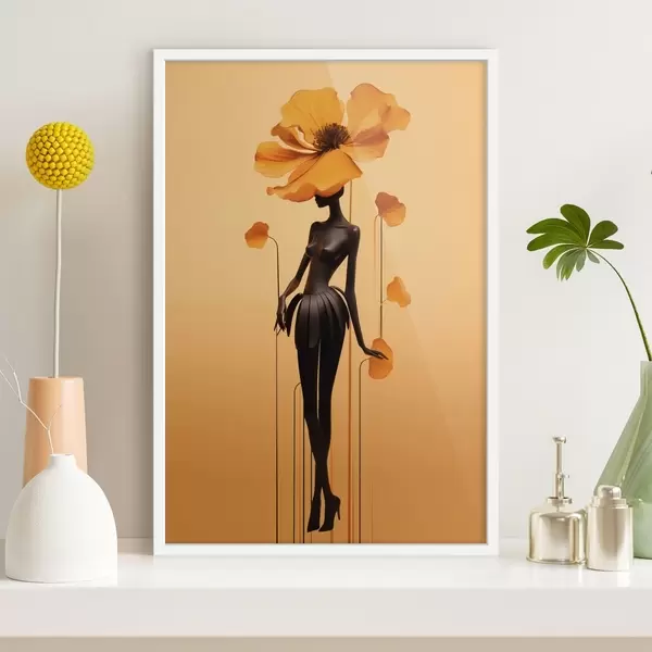 Poster Una figura elegante con fiori su uno sfondo dai toni caldi sfumati Nr f48619