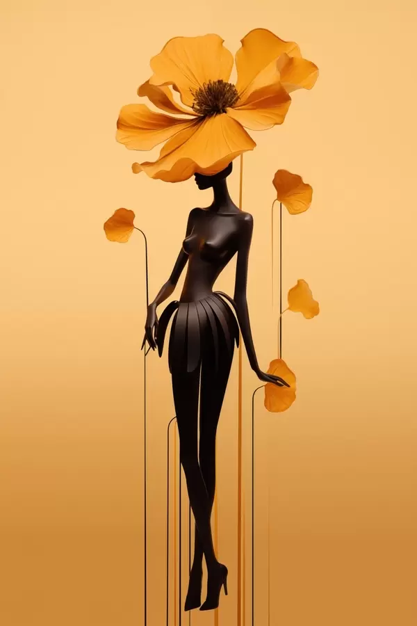 Poster Una figura elegante con fiori su uno sfondo dai toni caldi sfumati Nr f48619