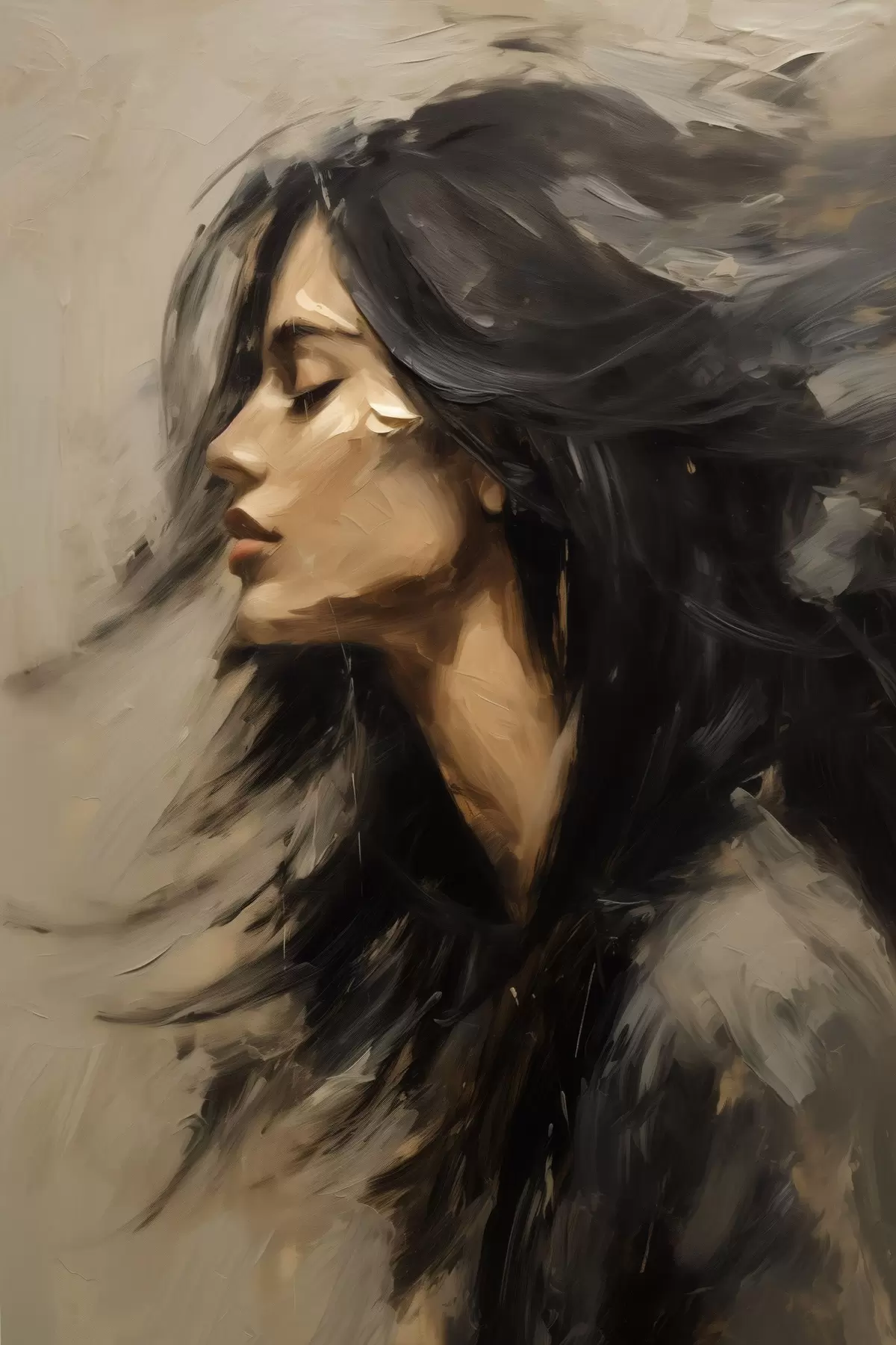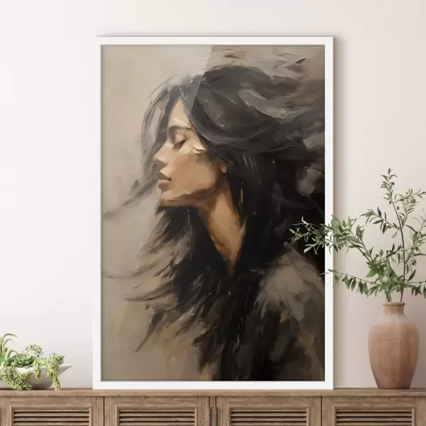Poster Ritratto di donna con capelli sciolti in stile pittorico f48622