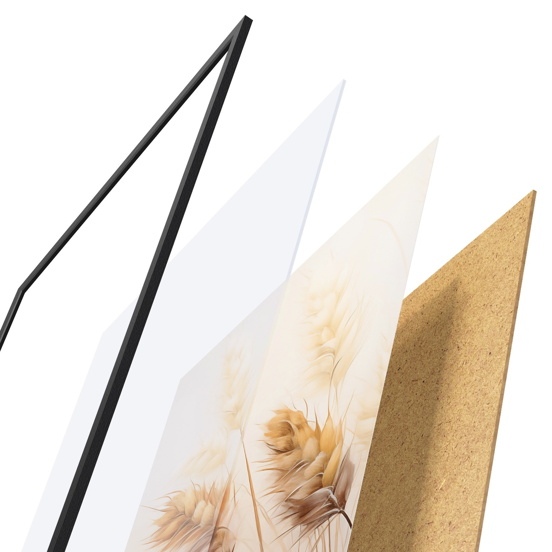 Il poster è composto da cornice, plexiglass, immagine stampata e supporto in truciolato. Il poster può essere immediatamente appeso alla parete grazie ai supporti sul retro.