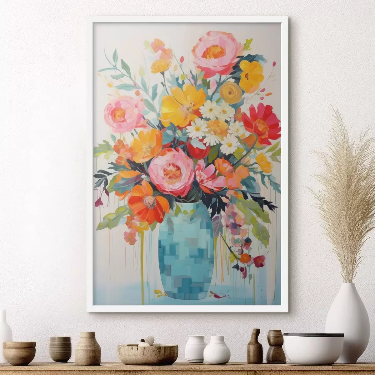 La verniciatura crea un ulteriore strato protettivo sulla tela. Il quadro sarà più resistente ai piccoli danni e per rinfrescarlo si può passare un panno morbido e leggermente umido.