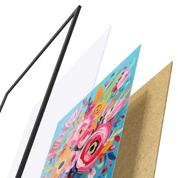 Il poster è composto da cornice, plexiglass, immagine stampata e supporto in truciolato. Il poster può essere immediatamente appeso alla parete grazie ai supporti sul retro.
