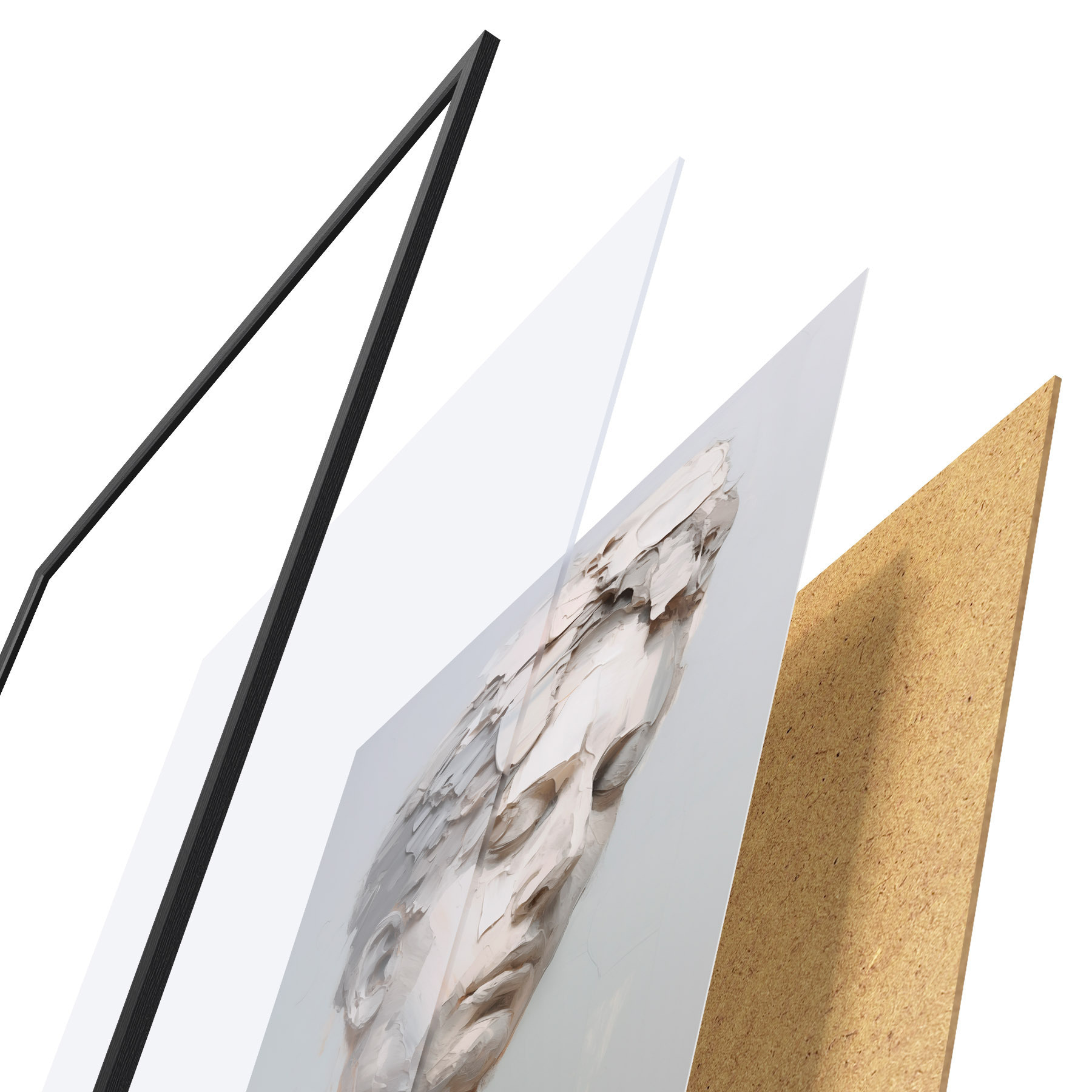 Il poster è composto da cornice, plexiglass, immagine stampata e supporto in truciolato. Il poster può essere immediatamente appeso alla parete grazie ai supporti sul retro.