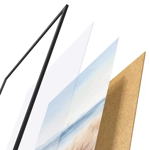 Il poster è composto da cornice, plexiglass, immagine stampata e supporto in truciolato. Il poster può essere immediatamente appeso alla parete grazie ai supporti sul retro.