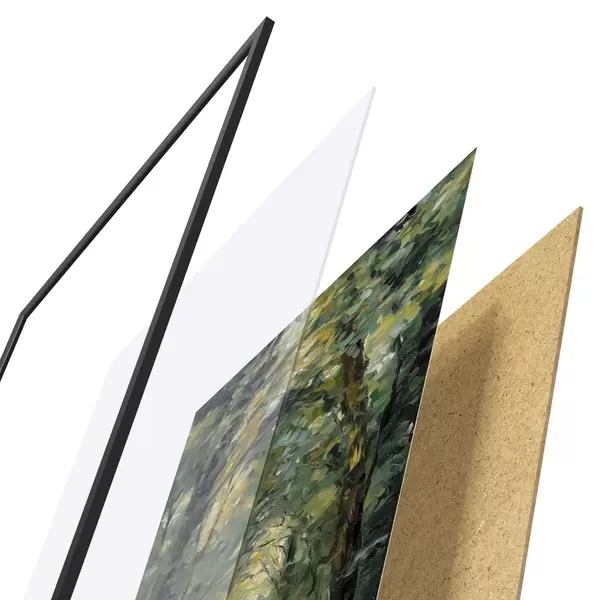 Il poster è composto da cornice, plexiglass, immagine stampata e supporto in truciolato. Il poster può essere immediatamente appeso alla parete grazie ai supporti sul retro.