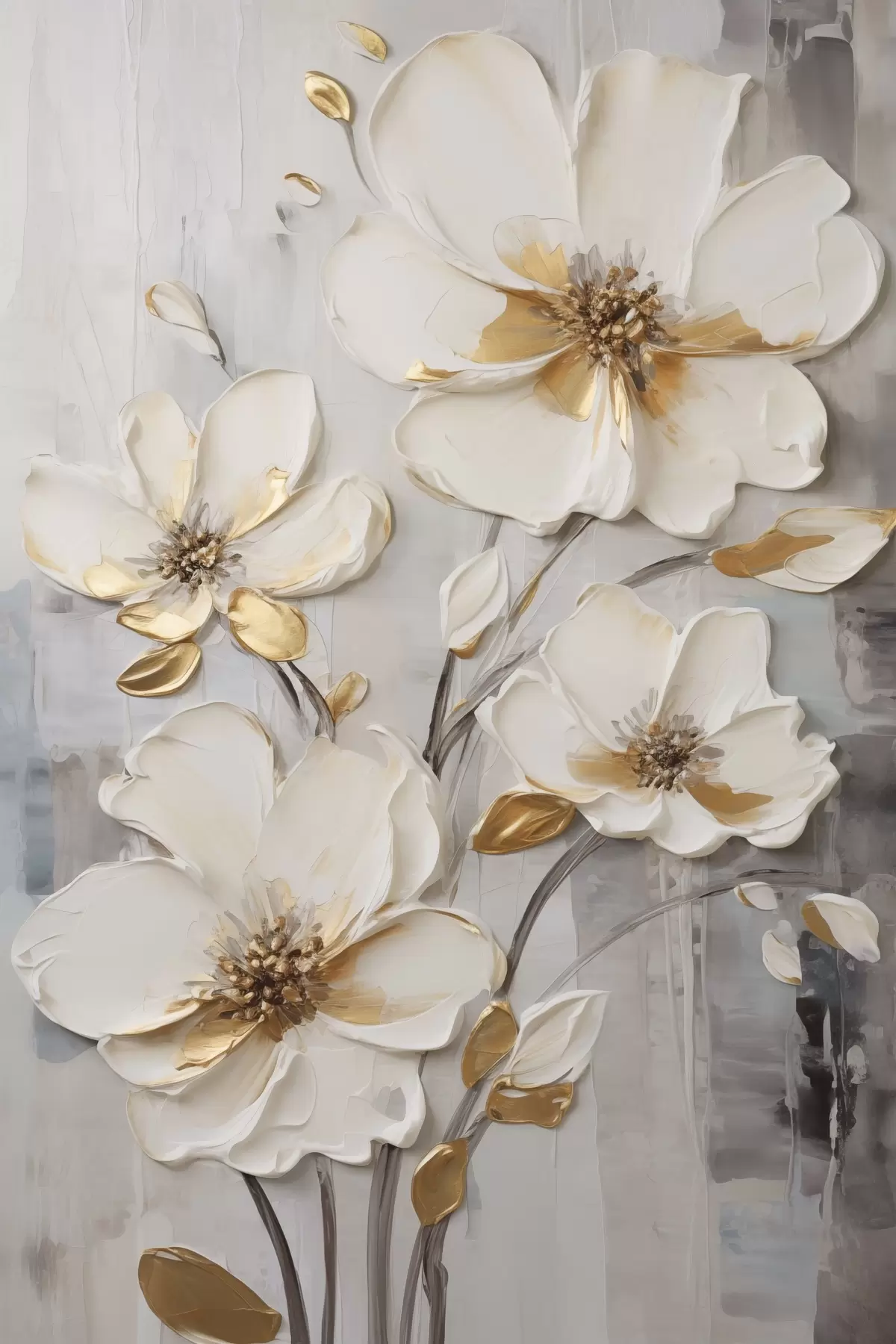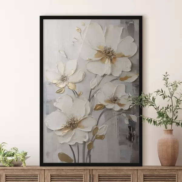 Poster Fiori bianchi con tocchi di giallo su uno sfondo ruvido Nr f48721