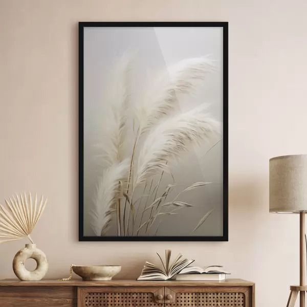 Poster Diversi esemplari di erba della pampa, alti e piumosi, con foglie lunghe e sottili Nr f48724